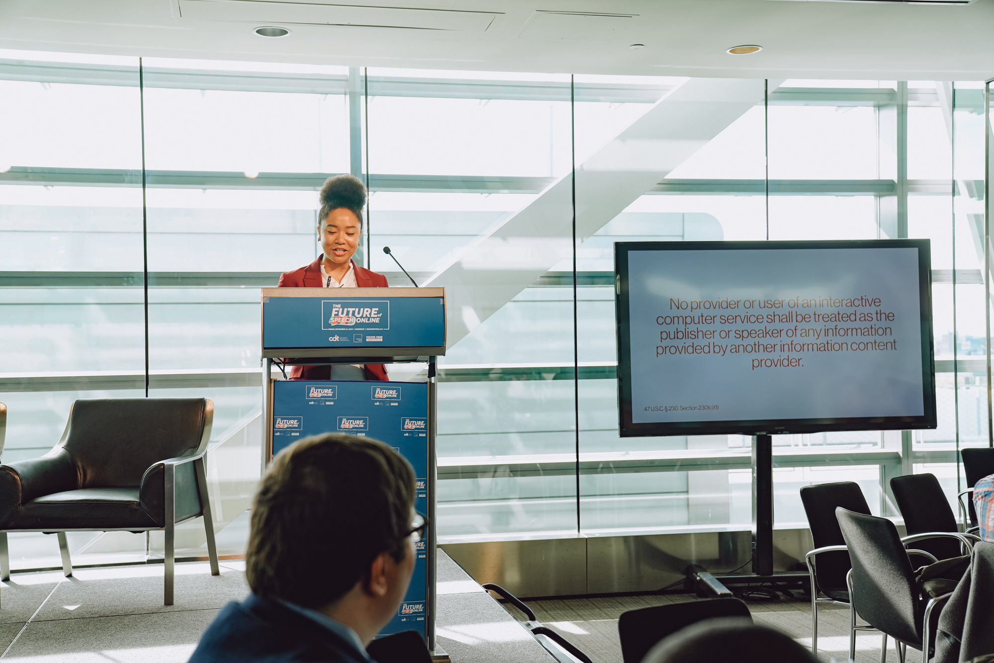 This year’s event featured speakers from D.C.’s Arena Stage, NetBlocks, Clovyr, MIT, Pinterest, the Tor Project, and more. Several participants, including journalists, game makers, and advocates, presented their own diverse visions for the future of speech online.