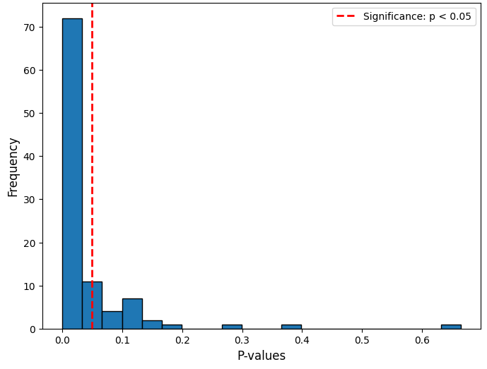 We can visualize the p-values from the 100 experiments in a histogram, as shown in Figure 4.
